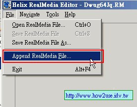 3.接著依序點選[Append RealMedia File]將要合併的檔按載入
