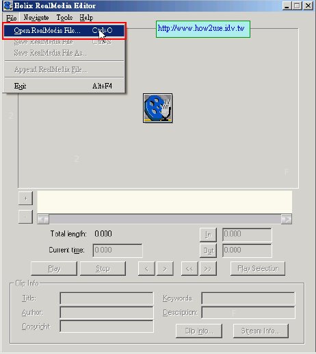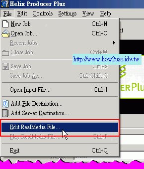 1. 執行 Helix Producer Plus後到[File]-->[Edit RealMedia File]就會開啟一個新的編輯視窗