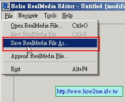 7.編輯好後選[Save RealMedia File As]將選定的影片片段儲存