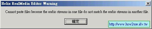 5.當你在載入RM檔時出現下方訊息表示有不同串流格式的RM檔無法合併