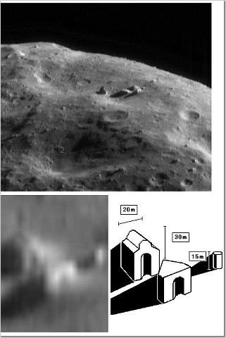 經由美國發射的探測器所拍到的照片加以辨認,那2萬座遺跡完全是由三角錐型的金字塔建築所組成的。每座城市實際上是一座巨型金字塔,全部沒有門窗,估計出入口可能設置在地下;這兩萬座城市擺成一個很大的馬車輪形狀,期間的輻射狀大道連接著中央的大城市。研究者認為這些金字塔式的城市可盡量避免高溫,夜間避嚴寒,再大的風暴也奈何它不得。